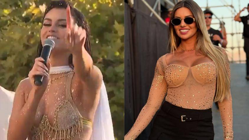 Emilia Dides cumplió con la tradición del piscinazo de la Reina de Viña, sin embargo, minutos antes de lanzarse tuvo un noble gesto con Faloon Larraguibel.